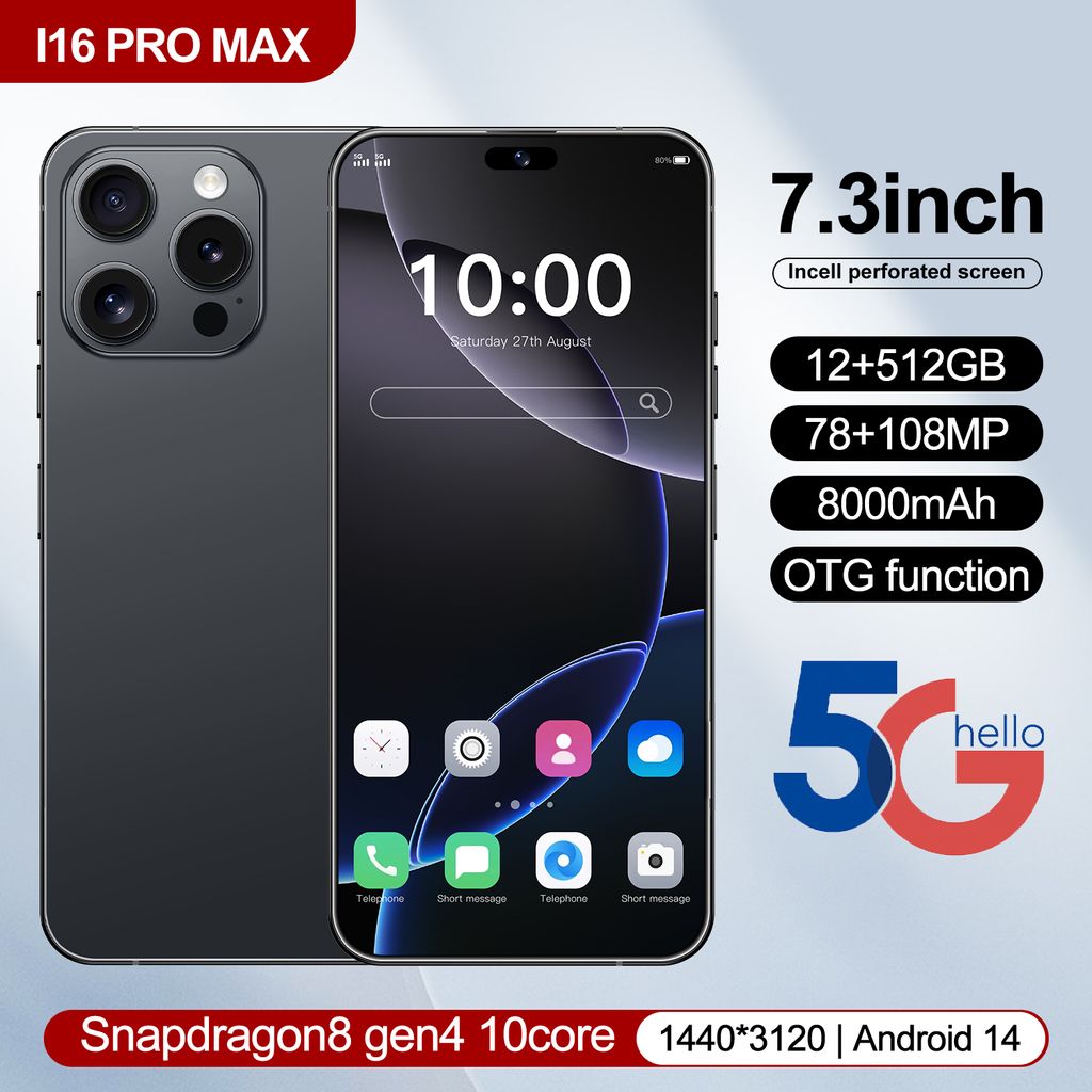 🔥i16 Pro Max — Your 5G Gaming Beast!Elite Performance: Max settings, ultra-smooth gameplayHD Camera: Capture every victory in stunning detail